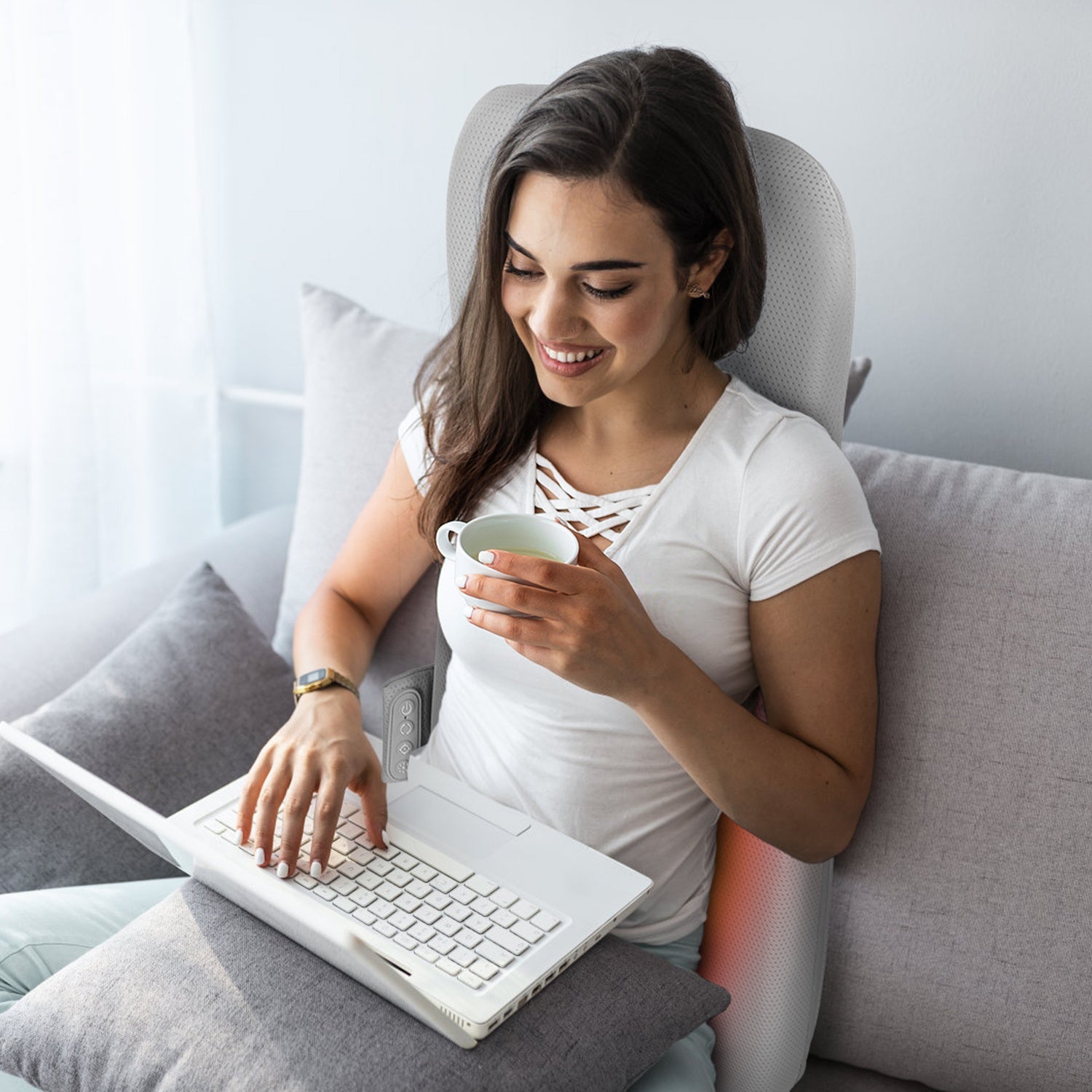 Experience therapeutic relief with this advanced back massage pad, engineered with eight rotating kneading nodes that traverse your spine's natural contours. Select from three targeted massage zones—full back, upper, or lower—to concentrate therapy precisely where tension resides. Dual-level heating function deepens relaxation while promoting circulation. Intuitive button controls and a 15-minute auto-shutoff ensure effortless operation. Powered by standard outlet or car adapter, this versatile wellness tool suits desk professionals, athletes, and anyone seeking daily muscular recovery. An elegant gift for those who value self-care and comfort.