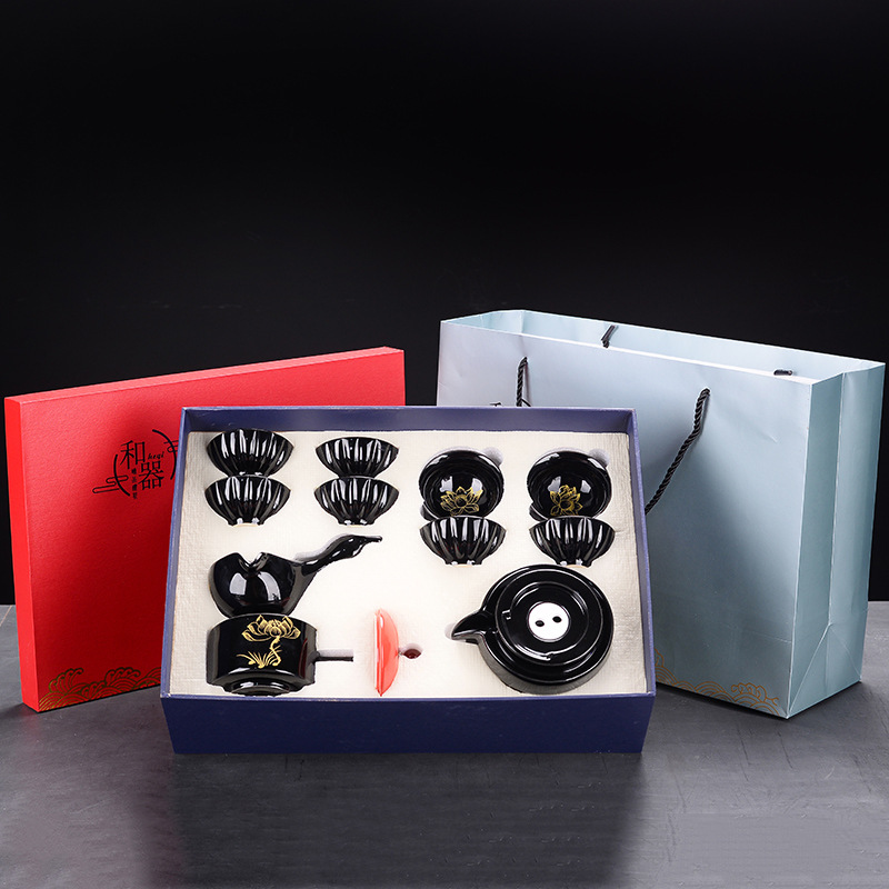 A: Lotus automatic tea set-dark blue safety packaging, B: Lotus automatic tea set-black safety packaging, C: Lotus automatic tea set-dark blue (gift box), D: Lotus automatic tea set-black (gift box)