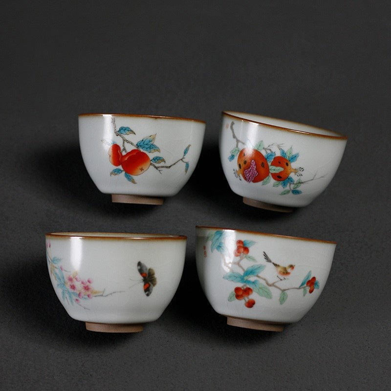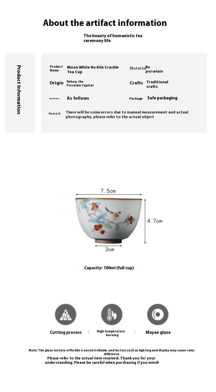 Color: Moon White Ru device incense Cup-spring and autumn solid, Moon White Ru device incense Cup-all excellent cup, Moon White Ru device incense Cup-duozi Duofu, Moon White Ru device incense Cup-autumn night listening to rain, moon White Ru tea cup-skimming Cup-pomegranate, Moon White Ru tea cup-skimming Cup-Persimmon